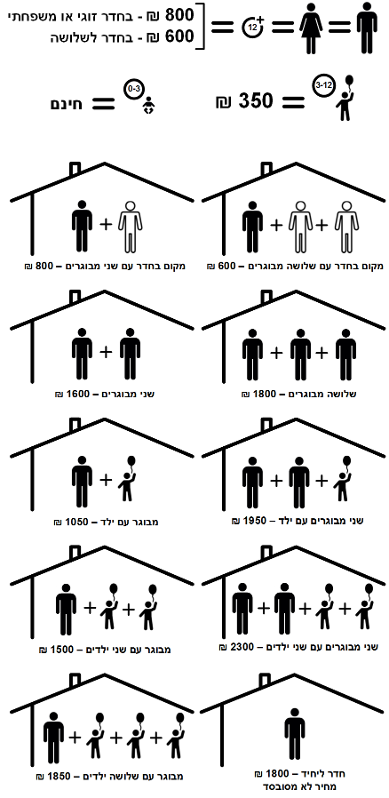 • מחיר לאדם בחדר זוגי או משפחתי – 800 ₪