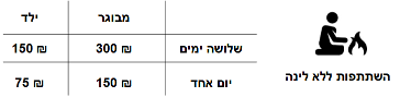 • מבוגר בחדר לבד – 1800 ₪ (מחיר לא מסובסד)